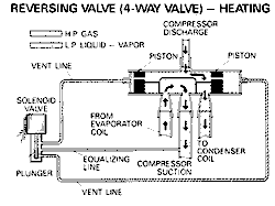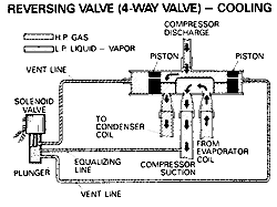 As shown below Heat Pump system has a reversing valve 4-way valve) incorporated which reverses the refrigerant flow in the refrigerant circuit.